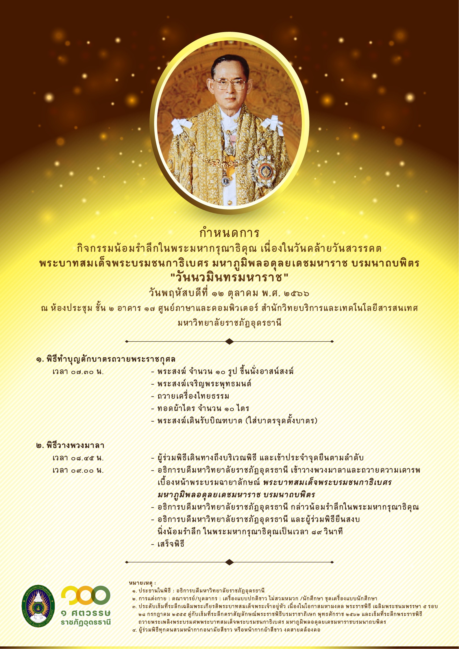 กำหนดการ กิจกรรมน้อมลำลึกในพระมหากรุณาธิคุณฯ ข่าวโดย : งานประชาสัมพันธ์ มหาวิทยาลัยราชภัฏอุดรธานี ก่อนหน้า ต่อไป