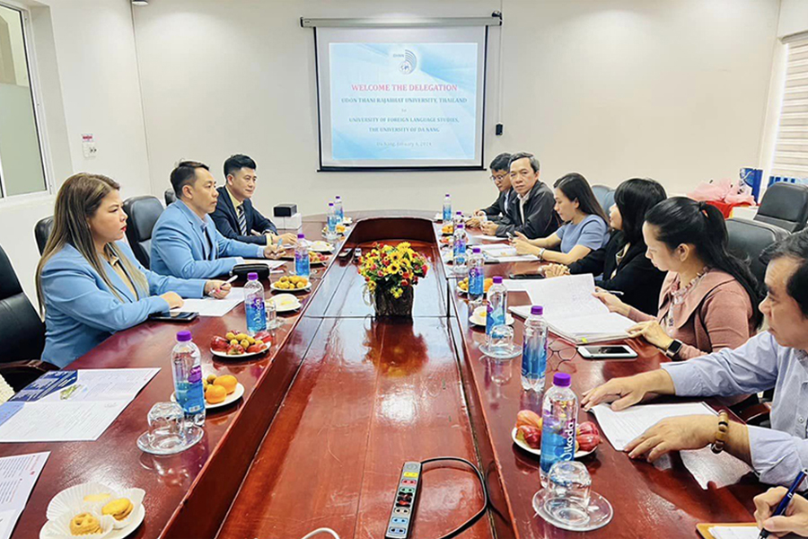 วันที่ 4 มกราคม 2567 ผศ.ดร.คณิศร จี้กระโทก รองคณบดี , อ.ญาณี ช่อสูงเนิน ผู้ช่วยคณบดี คณะครุศาสตร์ และ Dr. Mai Xuan Hung อาจารย์ มหาวิทยาลัยราชภัฏอุดรธานี ได้เดินทางไปยังมหาวิทยาลัยภาษาต่างประเทศดานัง นครดานัง ประเทศสาธารณรัฐสังคมนิยมเวียดนามเพื่อแลกเปลี่ยนนักศึกษาในการฝึกประสบการณ์ และหารือระหว่างสองสถาบันโดยมี Dr. Huynh Thi Mai Kha รองอธิการบดี และผู้บริหารของมหาวิทยาลัยภาษาต่างประเทศดานัง ให้การต้อนรับและร่วมหารือ ถึงแนวทางในการแลกเปลี่ยนนักศึกษาและบุคลากรในสาขาวิชาต่างๆ ร่วมกัน การขอความร่วมมือในการประชุมวิชาการนานาชาติ และการแลกเปลี่ยนทางวิชาการอื่นๆ นอกจากนั้นยังกล่าวถึงการแลกเปลี่ยนบุคลากรในการจัดการเรียนการสอนในรูปแบบออนไลน์ร่วมกัน ซึ่งประเด็นเหล่านี้เป็นที่น่าสนใจและสามารถพัฒนาร่วมกันได้