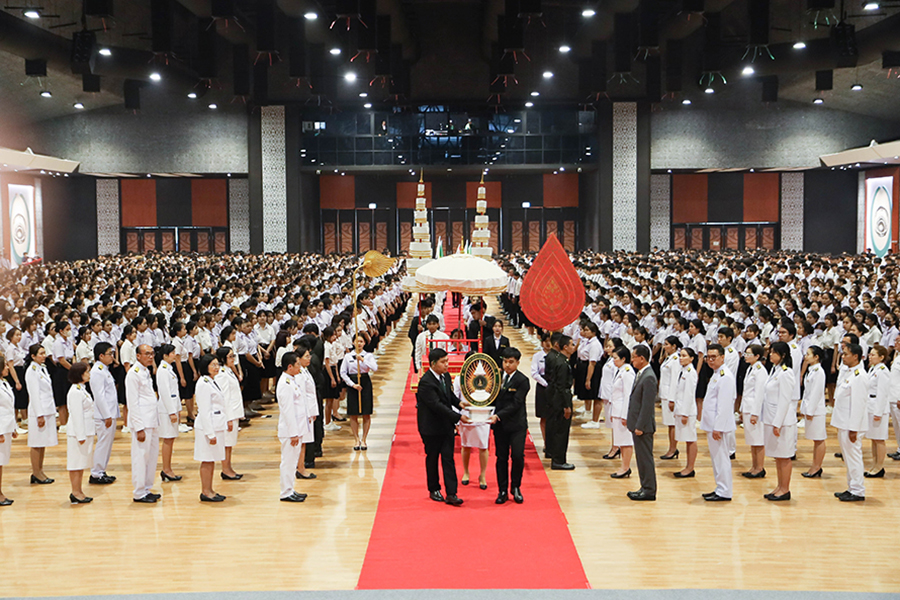 องค์การนักศึกษา มหาวิทยาลัยราชภัฏอุดรธานี จัดพิธีอัญเชิญตราพระราชลัญจกร น้อมรำลึกในพระมหากรุณาธิคุณ และประดับตรามหาวิทยาลัย ดอกจานรุ่นที่ 100 ประจำปีการศึกษา 2566