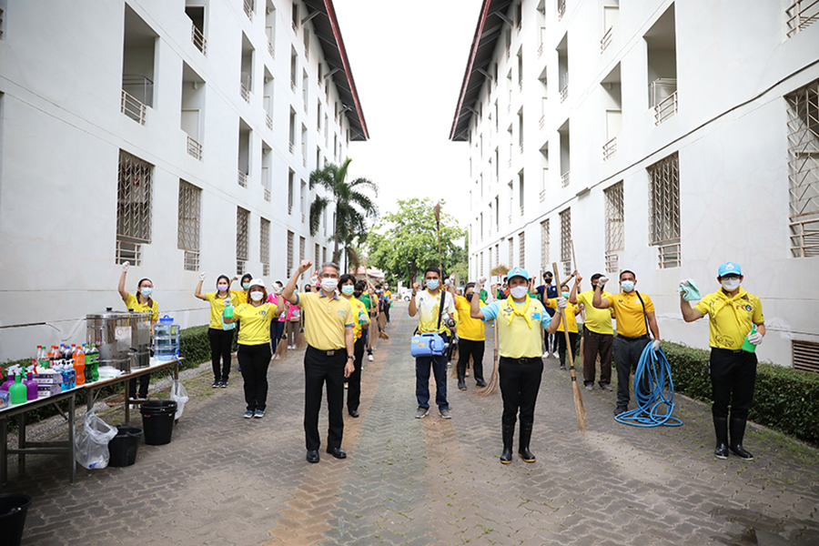 ในขณะเดียวกัน บุคลากรของมหาวิทยาลัย ก็ได้ช่วยกันทำความสะอาด เช็ดแอลกอฮอล์ภายในสำนักงานของตนเอง โดยเฉพาะบริเวณชั้น 1 อาคารเฉลิมพระเกียรติฯ ซึ่งมีประชาชนและนักศึกษา มาใช้บริการและติดต่อราชการทุกวัน เพื่อสร้างความมั่นใจด้านความปลอดภัยในการป้องกันโควิด-19 ของมหาวิทยาลัย อีกทางหนึ่งด้วย