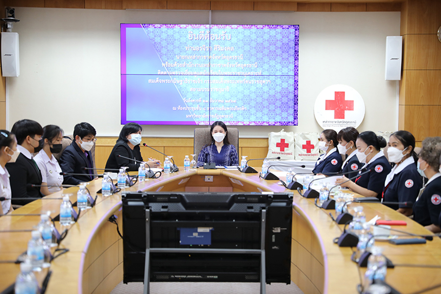 วันที่ 21 ธันวาคม 2564 ณ ห้องประชุมชั้น 8 อาคารเฉลิมพระเกียรติ นางอรจิรา ศิริมงคล ที่ปรึกษาเหล่ากาชาดจังหวัดอุดรธานี พร้อมด้วยสำนักงานเหล่ากาชาดติดตามตรวจเยี่ยมดูแลนักเรียนในพระราชานุเคราะห์ สมเด็จพระกนิษฐาธิราชเจ้า กรมสมเด็จพระเทพรัตนราชสุดาฯ สยามบรมราชกุมารี โดยมี ผศ.ดร.คณิศรา ธัญสุนทรสกุล รักษาราชการแทนอธิการบดี และผู้อำนวยการกองพัฒนานักศึกษา , บุคลากร ร่วมให้การต้อนรับ