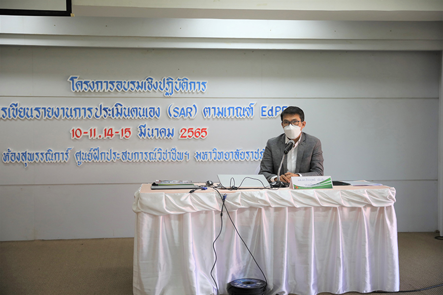 วันที่ 10 มีนาคม 2565 ณ ห้องสุพรรณิการ์ ศูนย์ฝึกประสบการณ์วิชาชีพฯ ผศ.ดร.ธีระยุทธ์ เพ็งชัย เป็นประธานกล่าวเปิดการอบรมเชิงปฏิบัติการ "เรื่อง การเขียนรายงานการประเมินตนเอง (SAR) ตามเกณฑ์ EdPEx" ซึ่งการอบรมในครั้งนี้จะช่วยกระตุ้นบุคลากรเกิดเเนวคิดที่สร้างสรรค์ ปรับปรุงพฤติกรรมการปฏิบัติงาน สร้างนวัตกรรมและมีความคล่องตัว ด้วยวิธีการเลือกเครื่องมือที่เหมาะสมกับหน่วยงานมากที่สุด เสริมสร้างประสิทธิผลเต็มที่ต่อการขับเคลื่อน การปรับปรุง และทำให้บรรลุเป้าหมายอย่างต่อเนื่อง การจัดอบรมแบ่งออกเป็นสองกลุ่ม คือ กลุ่มระดับมหาวิทยาลัยและระดับสำนัก สถาบัน ระหว่างวันที่ 10 - 11 มีนาคม 2565 จำนวน 50 คน และกลุ่มระดับคณะหรือหน่วยงานเทียบเท่าคณะ ในวันที่ 14 - 15 มีนาคม 2565 จำนวน 50 คน และในโอกาสนี้ได้รับเกียรติจาก ผศ.ดร.กริช แรงสูงเนิน จากมหาวิทยาลัยขอนแก่น มาเป็นวิทยากรอบรมในครั้งนี้