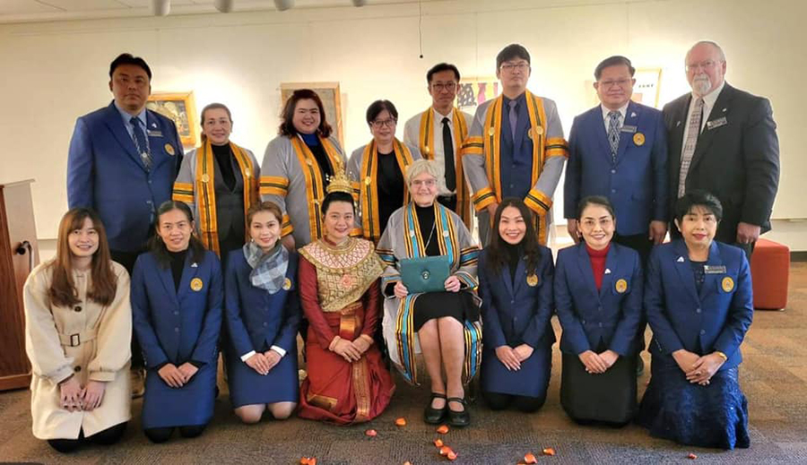 วันที่ 26 ตุลาคม 2565 ณ มหาวิทยาลัย Southwest Minnesota State University สหรัฐอเมริกา ดร.สุภัทรา วันเพ็ญ ผู้ช่วยอธิการบดี เป็นผู้แทนมหาวิทยาลัยราชภัฏอุดรธานี ทำพิธีมอบปริญญาปรัชญาดุษฎีบัณฑิตกิตติมศักดิ์ สาขาวิชาการบริหารการศึกษา ให้แก่ ศาสตราจารย์ ดร.ชารอน อี เคบส์ โดยมี ดร.ปุณรัตน์ พิพิธกุล คณบดีคณะครุศาสตร์ ในฐานะหน่วยงานผู้เสนอชื่อเป็นผู้กล่าวรายงาน ในพิธีมีผู้แทนมหาวิทยาลัย Southwest Minnesota State University เข้าร่วมพิธี และร่วมแสดงความยินดี