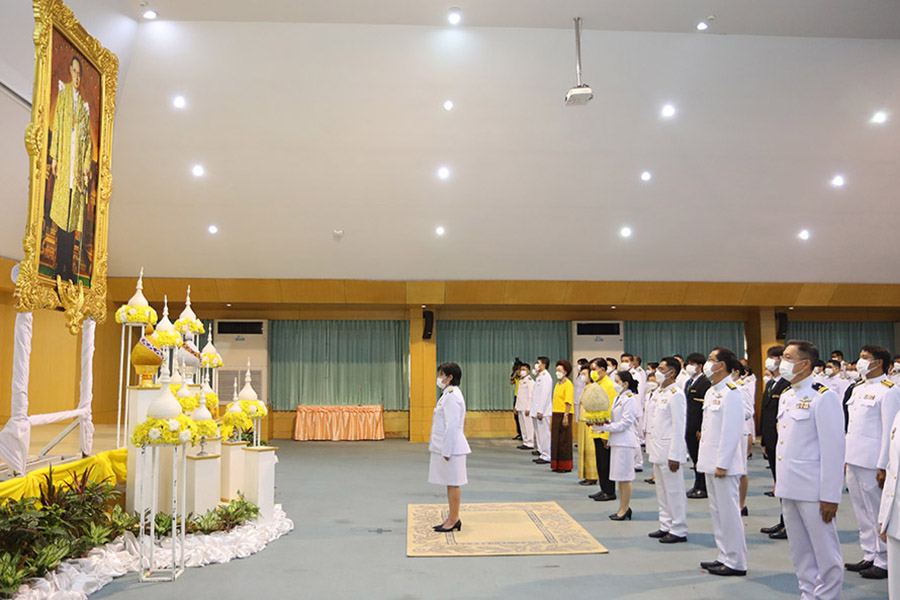 จากนั้นเวลา 09.00 น. ผู้เข้าร่วมพิธีพร้อมกัน ณ ห้องประชุม ชั้น 2 อธิการบดีวางพานพุ่มถวายราชสักการะ จุดเครื่องทองน้อย นำกล่าวคำถวายราชสดุดีน้อมสำนึกในพระมหากรุณาธิคุณ จากนั้น อธิการบดี ผู้แทนคณะ สำนัก หน่วยงานต่างๆ ผู้มีเกียรติ และผู้นำนักศึกษา ถวายบังคม เบื้องหน้าพระบรมฉายาลักษณ์ พระบาทสมเด็จพระบรมชนกาธิเบศร มหาภูมิพลอดุลยเดชมหาราช บรมนาถบพิตร เพื่อน้อมรำลึกในพระมหากรุณาธิคุณของพระองค์ท่าน ที่ทรงมีต่อชาวราชภัฏทั้งมวล