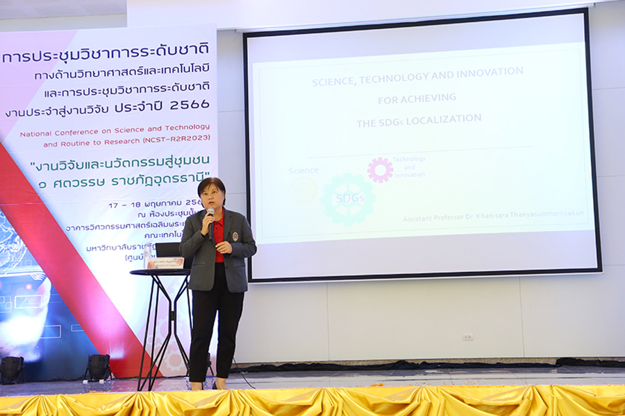 วันที่ 17 พฤษภาคม 2566 ณ อาคารวิศวกรรมศาสตร์ มหาวิทยาลัยราชภัฏอุดรธานี สามพร้าว ผศ.ดร.คณิศรา ธัญสุนทรสกุล อธิการบดีกล่าวเปิดการประชุมวิชาการระดับชาติงานประจำสู่งานวิจัย ครั้งที่ 2 (The 2nd National Conference on Science and Technology and Routine to Research) พร้อมทั้งบรรยายพิเศษ “Science ,Technology and Innovation for Achieving The SDGs Localizaton”