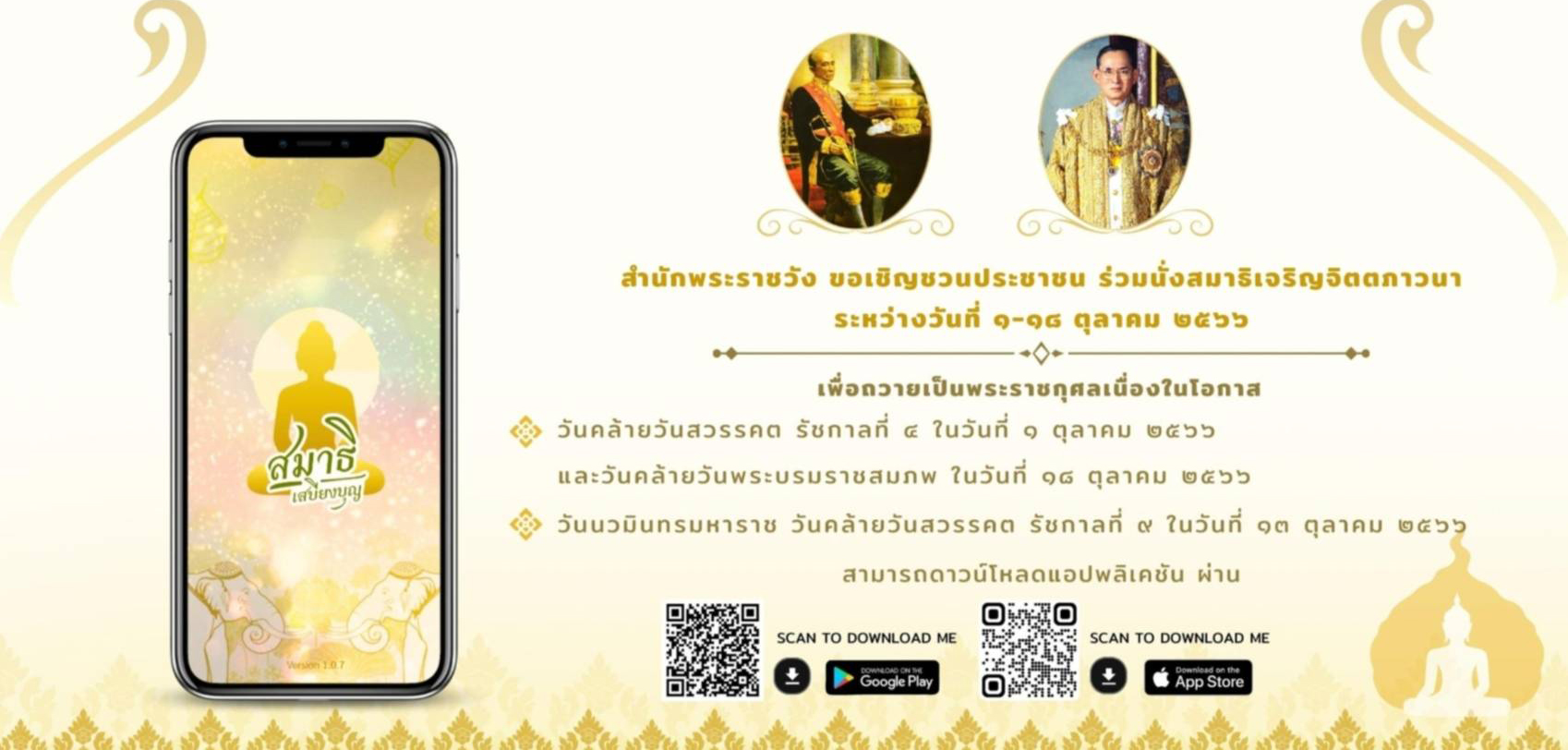 สำนักพระราชวัง ขอเชิญชวนประชาชนร่วมนั่งสมาธิเจริญจิตตภาวนา เพื่อถวายเป็นพระราชกุศลเนื่องในโอกาสวันคล้ายวันสวรรคต พระบาทสมเด็จพระจอมเกล้าเจ้าอยู่หัว พระสยามเทวมหามกุฏวิทยมหาราช