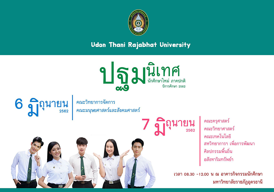กำหนดการ ปฐมนิเทศนักศึกษาใหม่ มหาวิทยาลัยราชภัฏอุดรธานี ประจำปีการศึกษา 2562