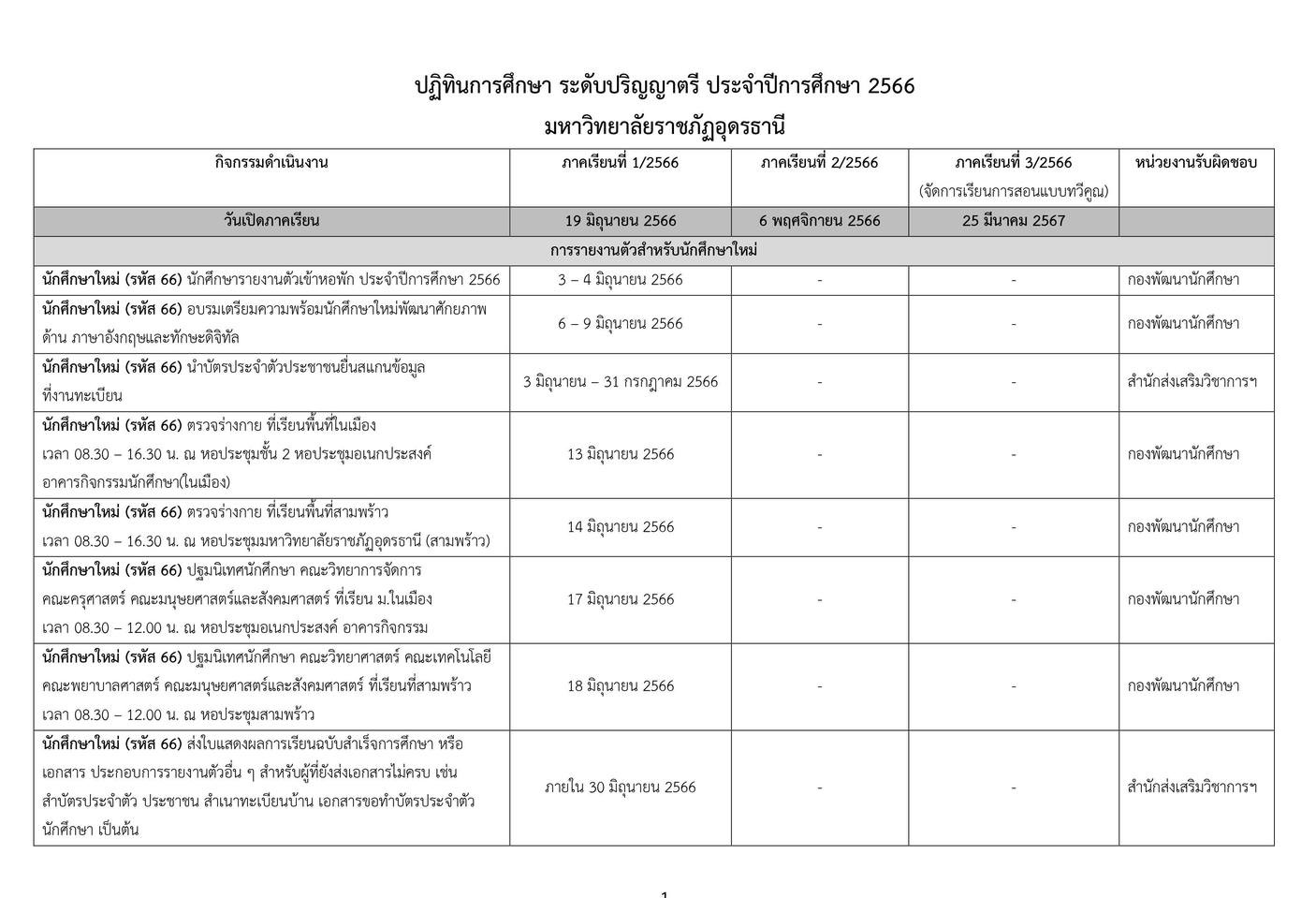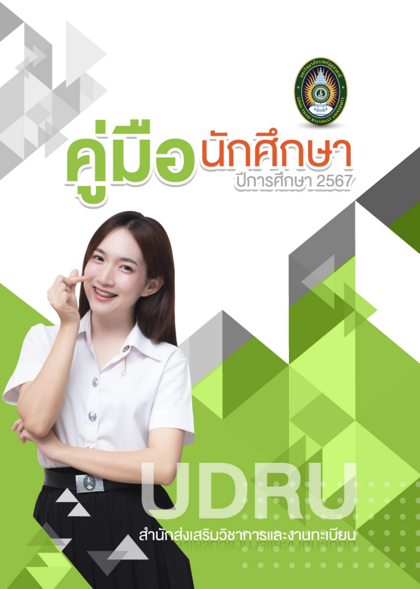 คู่มือนักศึกษา ประจำปีการศึกษา 2567 ฉบับนี้ สำนักส่งเสริมวิชาการและงานทะเบียน มหาวิทยาลัยราชภัฏอุดรธานีได้จัดทำขึ้น เพื่อให้นักศึกษาได้ใช้เป็นคู่มือในการศึกษา อาจารย์ผู้สอนและอาจารย์ที่ปรึกษา ได้ใช้เป็นคู่มือในการให้คำแนะนำนักศึกษา นักศึกษาจะต้องทำความเข้าใจในรายละเอียดตลอดระยะเวลาที่ศึกษาอยู่ ณ มหาวิทยาลัยราชภัฏแห่งนี้ จนกระทั่งสำเร็จการศึกษา..