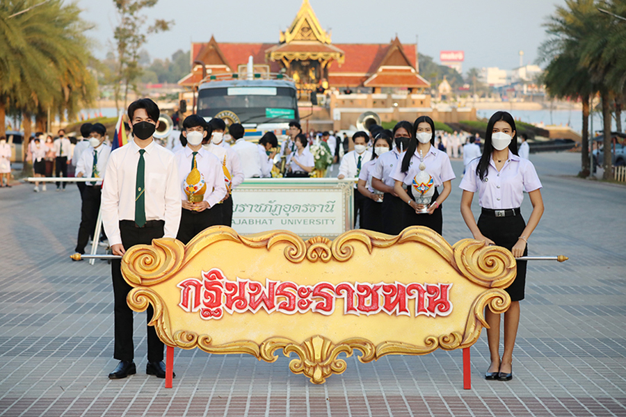 วันที่ 5 พฤศจิกายน 2565 เวลา 18.00 น. ณ ลานอเนกประสงค์ อาคาร 5 มหาวิทยาลัยราชภัฏอุดรธานี ผศ.ดร.คณิศรา ธัญสุนทรสกุล อธิการบดี นำคณะผู้บริหาร คณาจารย์ บุคลากร และนักศึกษา ร่วมพิธีสวดสมโภชองค์พระกฐินพระราชทาน และถวายเครื่องไทยธรรมแด่พระภิกษุสงฆ์ 9 รูป จากนั้นได้ร่วม รับประทานอาหารเย็น โดยมีการออกโรงทานของคณะอาจารย์ นักศึกษา หน่วยงานภายในมหาวิทยาลัย และมีการแสดงนาฎศิลป์ จากสาขานาฎศิลป์ คณะครุศาสตร์, การแสดงวงดนตรี จากสาขาวิชาดนตรี คณะมนุษยศาสตร์ฯ เป็นมหรสพสมโภชองค์พระกฐิน