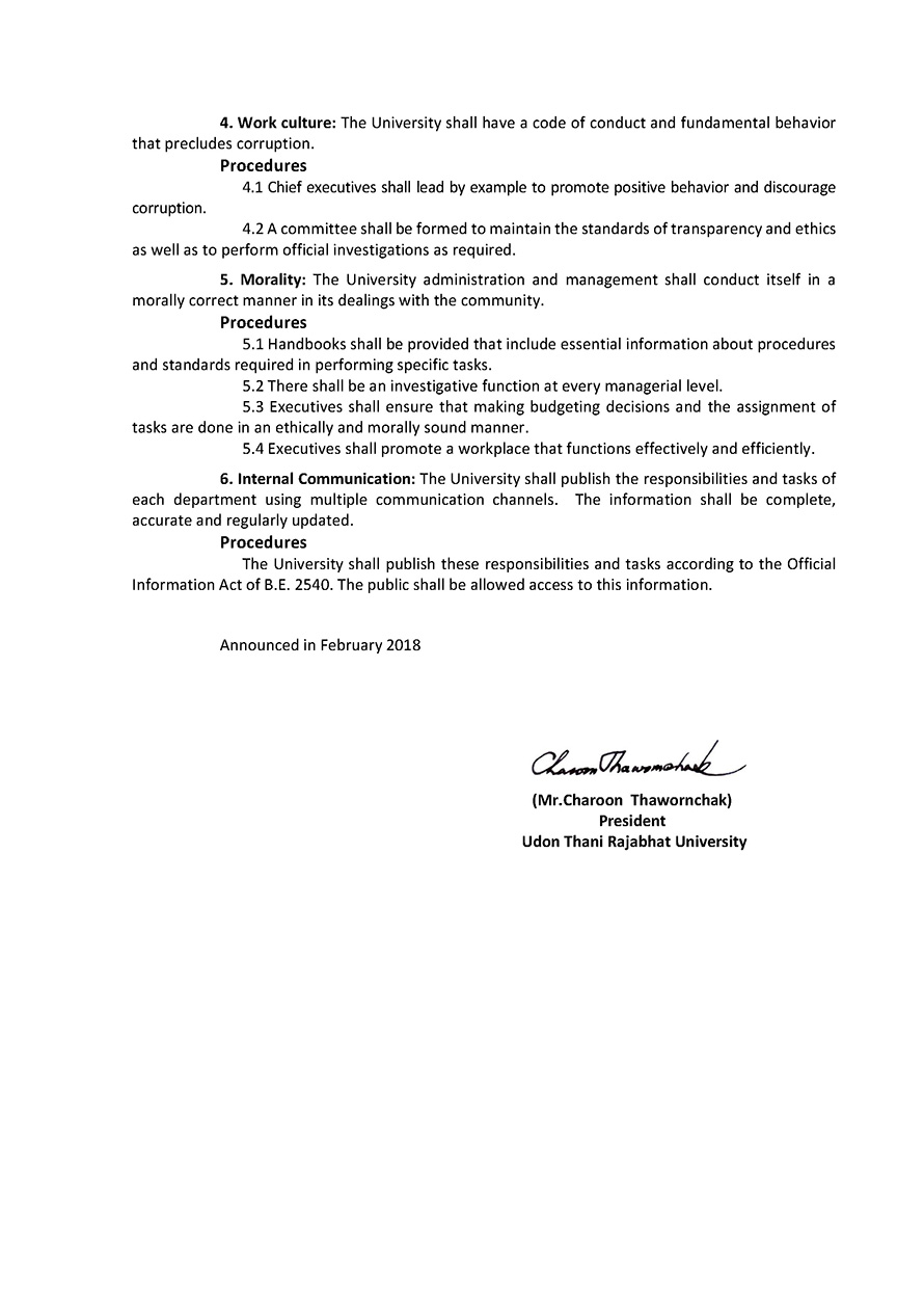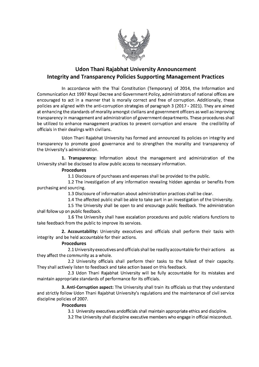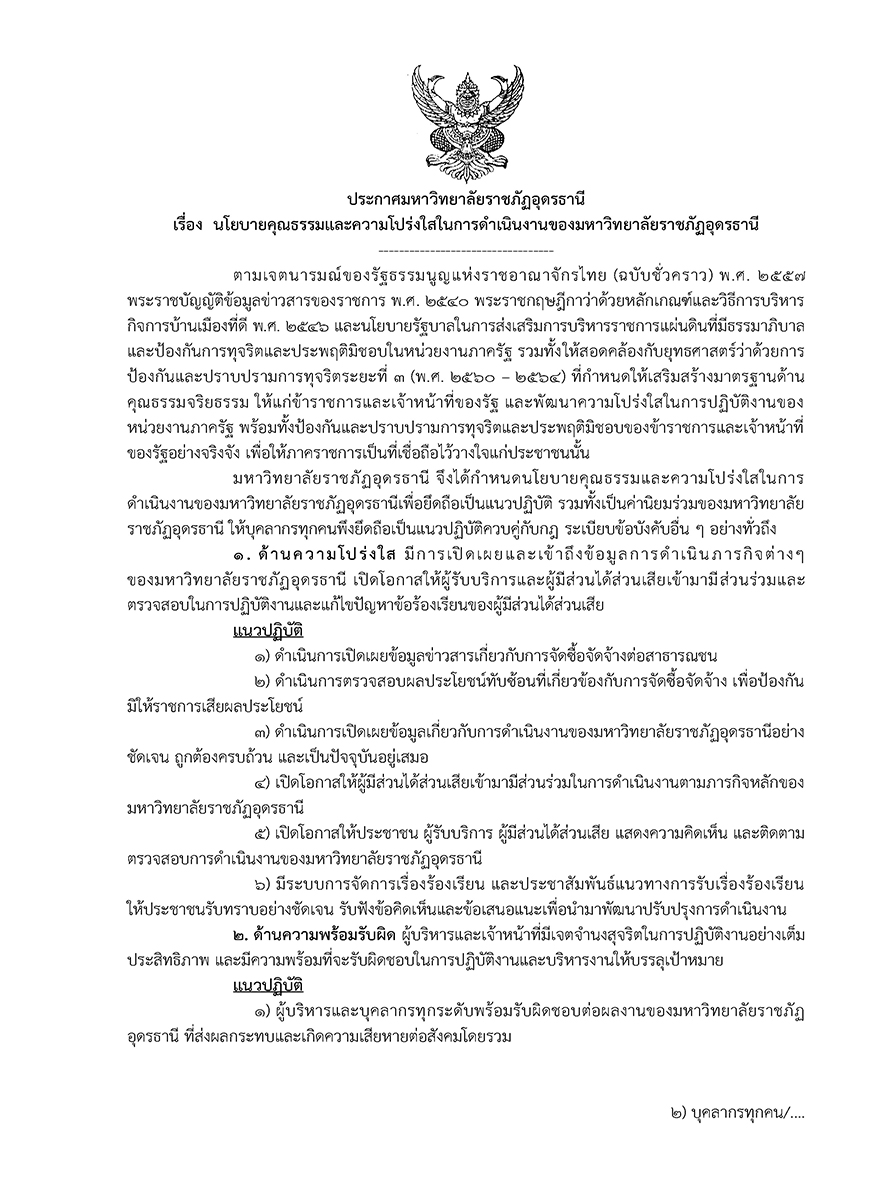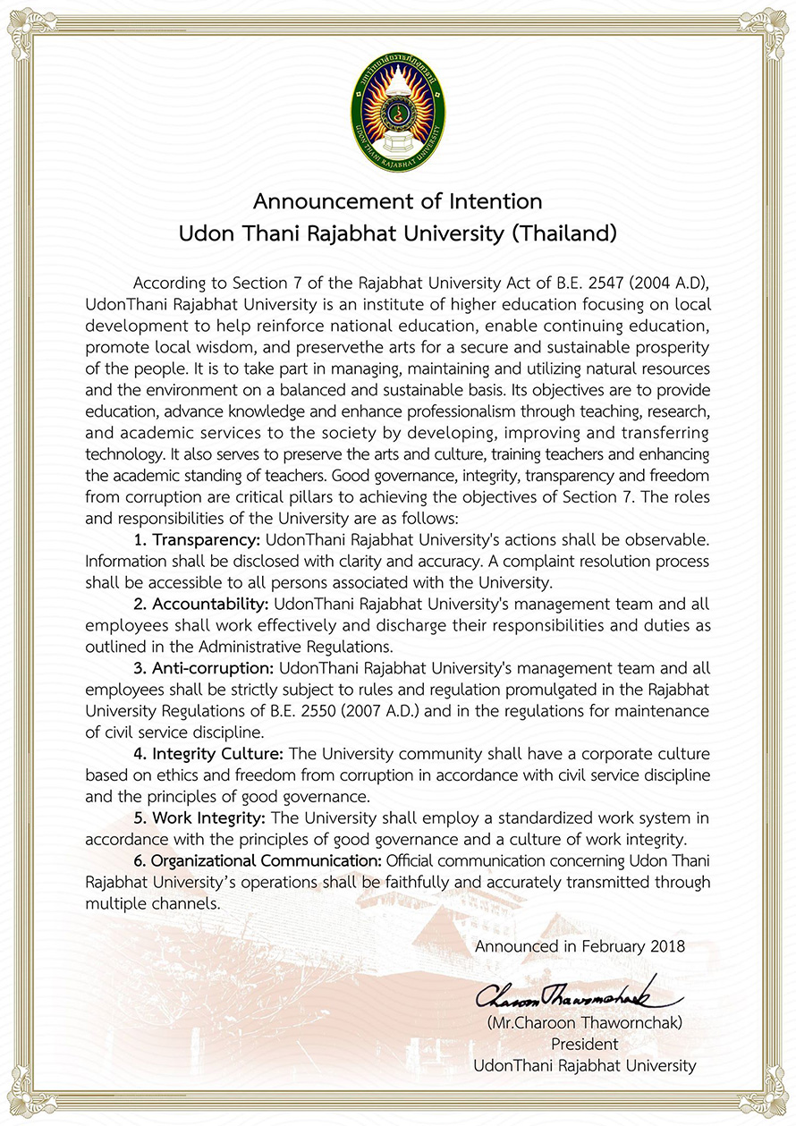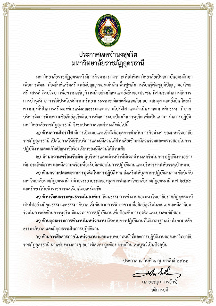 ประกาศเจตจำนงสุจริต มหาวิทยาลัยราชภัฏอุดรธานี